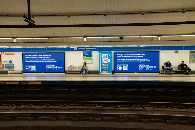 Con esta acción, se quiere resaltar cómo las interrupciones cotidianas, como un retraso o un problema técnico inesperado, pueden afectar a nuestra rutina, pero no de la misma forma que las interrupciones que viven las personas con hemofilia que pueden llegar a suponer un riesgo y alterar su día a día.