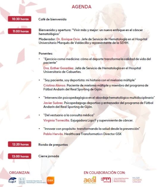La Sociedad Española de Hematología y Hemoterapia (SEHH), LigaF (Liga Porfesional de Fútbol Femenino) y la compañía biofarmacéutica GSK organizan, en colaboración con la Asociación Española de Afectados por Linfoma, Mieloma y Leucemia (AEAL), la Comunidad Española de Pacientes con Mieloma Múltiple (CEMMp) y la iniciativa Mujer, Deporte y Cáncer, el evento ¡EnmoviMMiento! Transformando el cáncer hematológico desde el deporte y la innovación’.