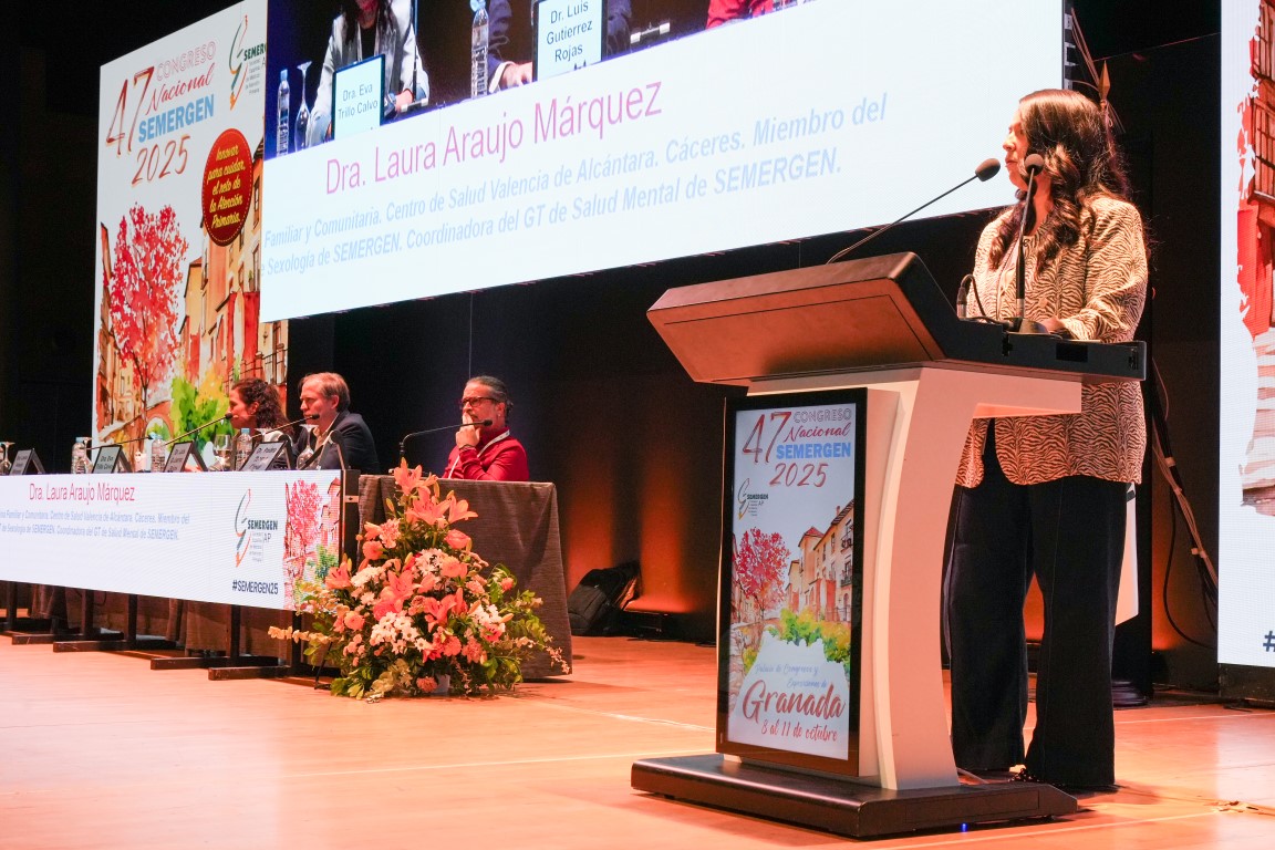 En una mesa moderada por la Dra. Laura Araujo Márquez, coordinadora del Grupo de Trabajo de Salud Mental, diferentes especialistas en Medicina de Familia y Psiquiatría han contribuido a visibilizar la magnitud del impacto de la depresión, la ansiedad y el burnout en Atención Primaria, con mensajes prácticos para la prevención, la promoción de la resiliencia y la humanización de la asistencia. El objetivo común fue sensibilizar a gestores y profesionales y proponer soluciones realistas desde Atención Primaria.