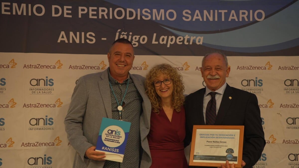 El Premio de la Delegación ANIS Aragón ha sido para Marcos Ruiz Baños, director del programa Ágora de Aragón Radio, quien expresó su emoción al recibir un reconocimiento “que viene de mis compañeros, los mejores informadores de la salud”, y aseguró que este galardón representa “el reconocimiento a un trabajo arduo, difícil y muy pasional”. Además, la Delegación de Aragón hizo entrega de un reconocimiento al periodista jubilado Paco Núñez por su gran implicación en la comunicación de Aragón.