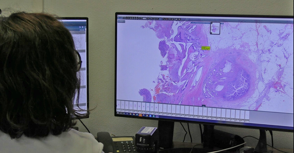 Anteriormente, las muestras de tejidos se analizaban a través de microscopios, un proceso que implicaba que los patólogos y patólogas contaran manualmente un número pequeño de células reactivas en las llamadas tinciones inmunohistoquímicas (conjunto de técnicas que permiten detectar la presencia de cáncer). Desde 2022, cuando se empezó a implementar la primera fase del proyecto, relacionada con la digitalización, los hospitales del ICS disponen de 24 escáneres de alta precisión conectados a 13 estaciones para digitalizar las muestras. Esto ha permitido que el número de células analizado por muestra sea muy superior y se puedan compartir, tanto las imágenes como los diagnósticos, en tiempo real y de forma segura, con el resto de hospitales de la red, creando una base de datos común de más de cuatro millones de imágenes digitalizadas.